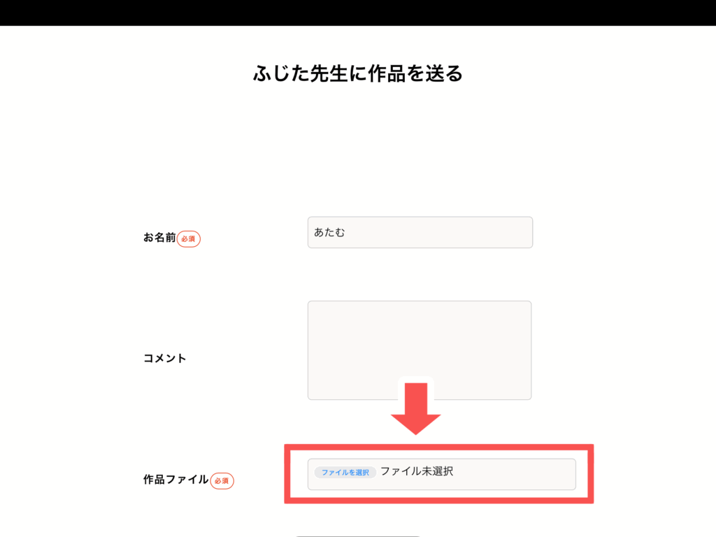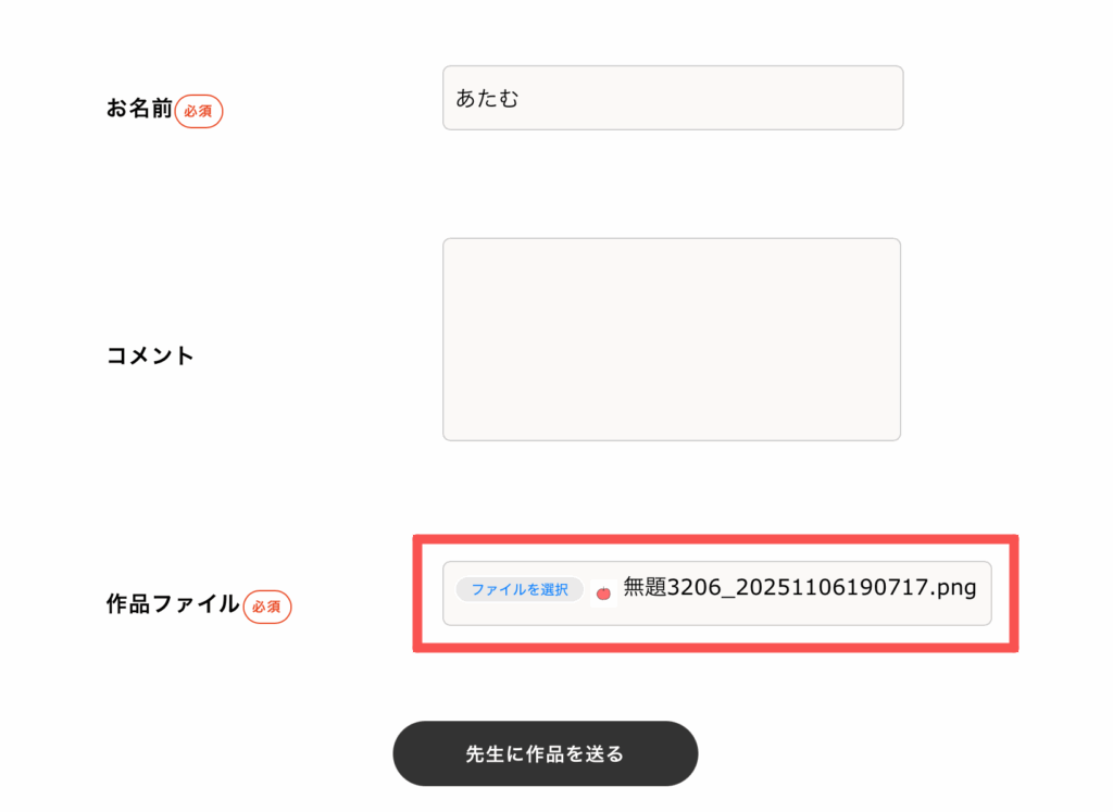 作品ファイルのところが「ファイル未選択(みせんたく)」からファイルの名前に変わりました!