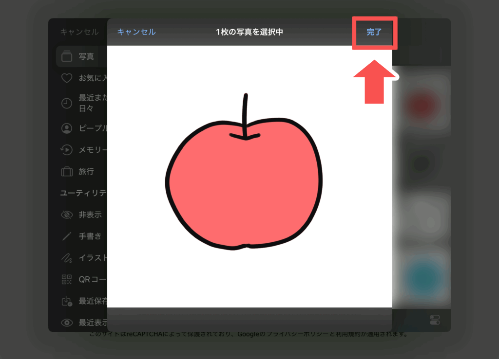 送りたい作品を選べたら、「完了(かんりょう)」をタッチします。