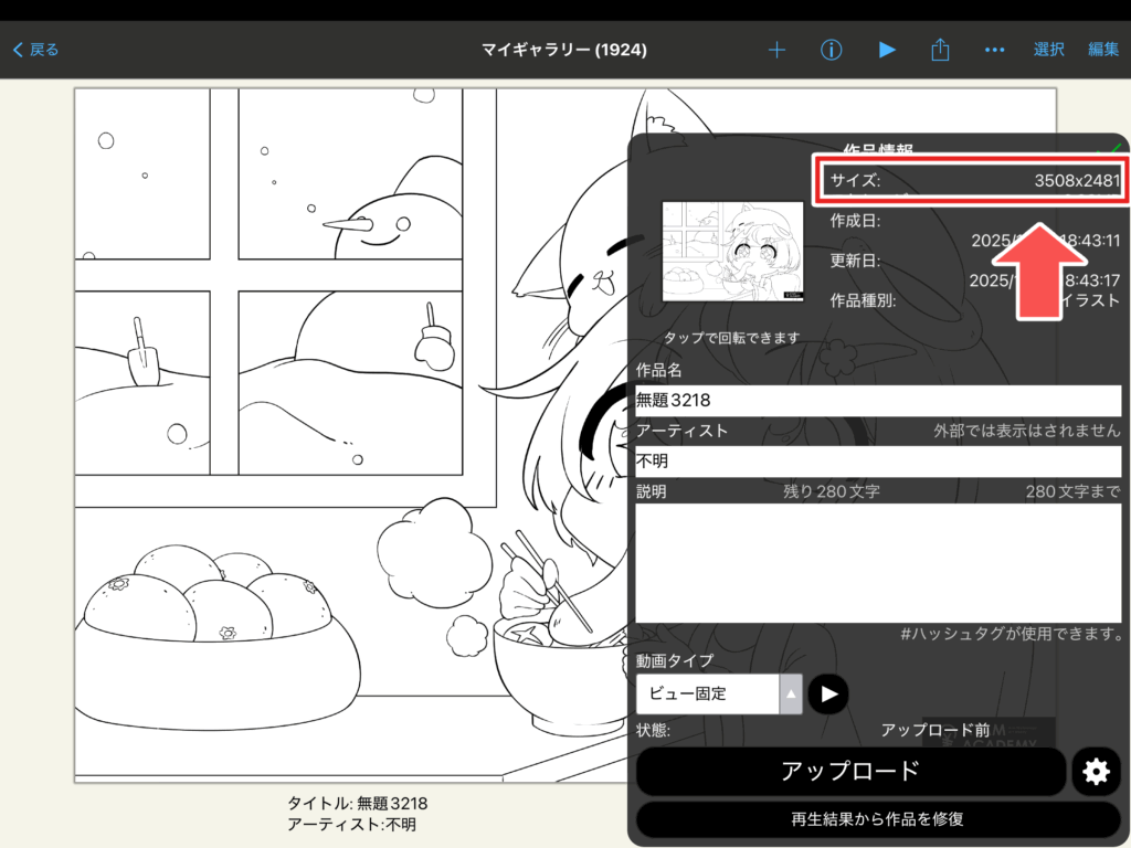 作品サイズの調べ方 と サイズ変更の方法 を図つきで紹介(しょうかい)します。