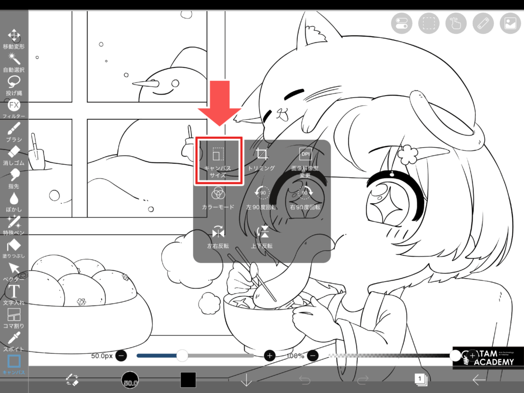 アイビスペイントでは、作品の大きさを変える方法が2種類あります。
