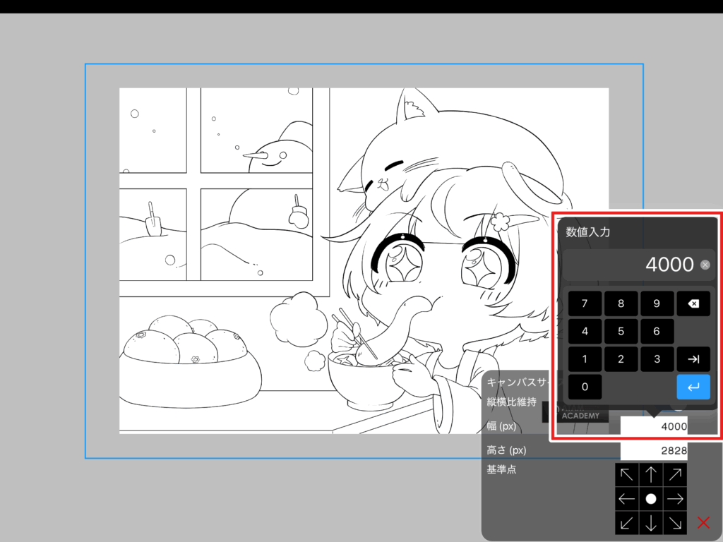 元のイラストの大きさはそのままで、キャンバスだけが大きくなりました。
