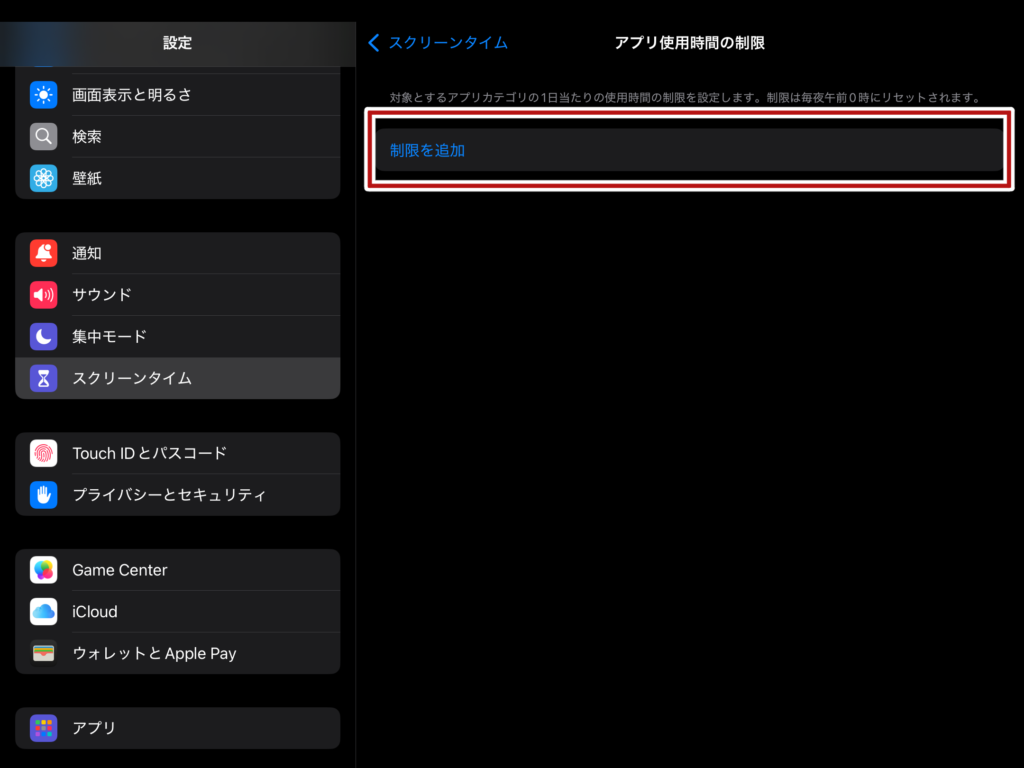 ipad全体に使用時間の制限をかけることができます。