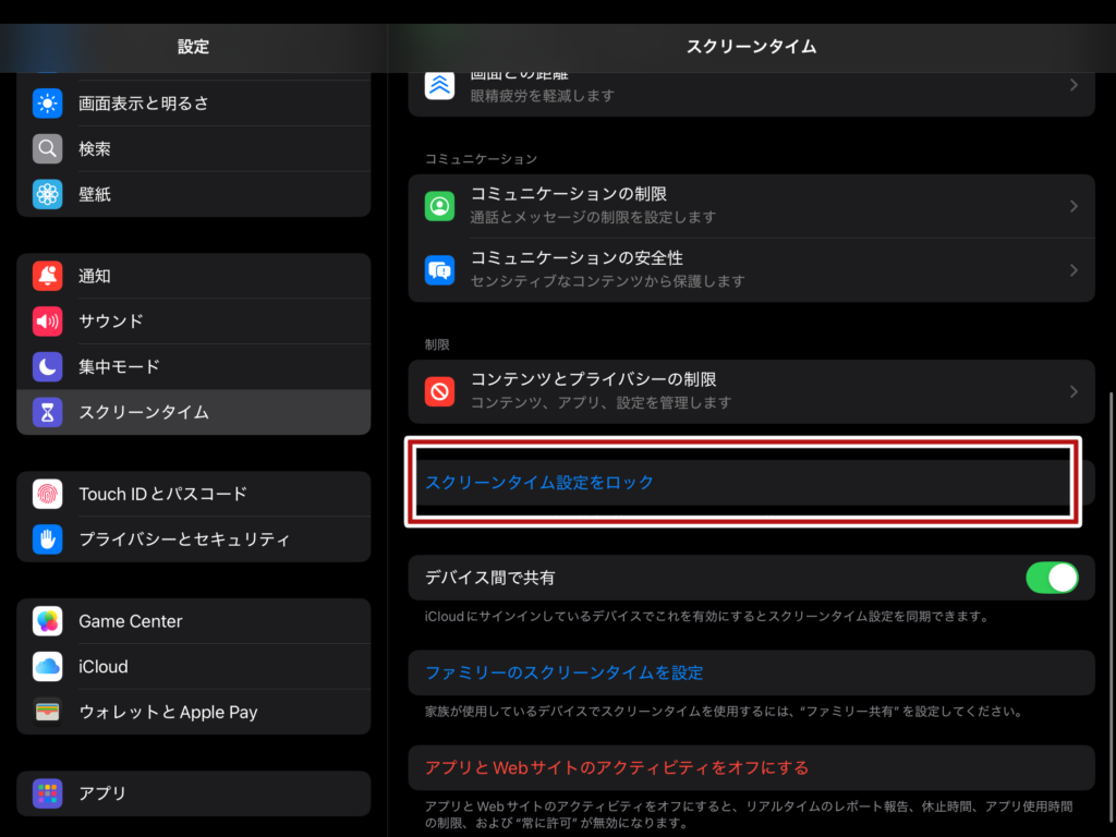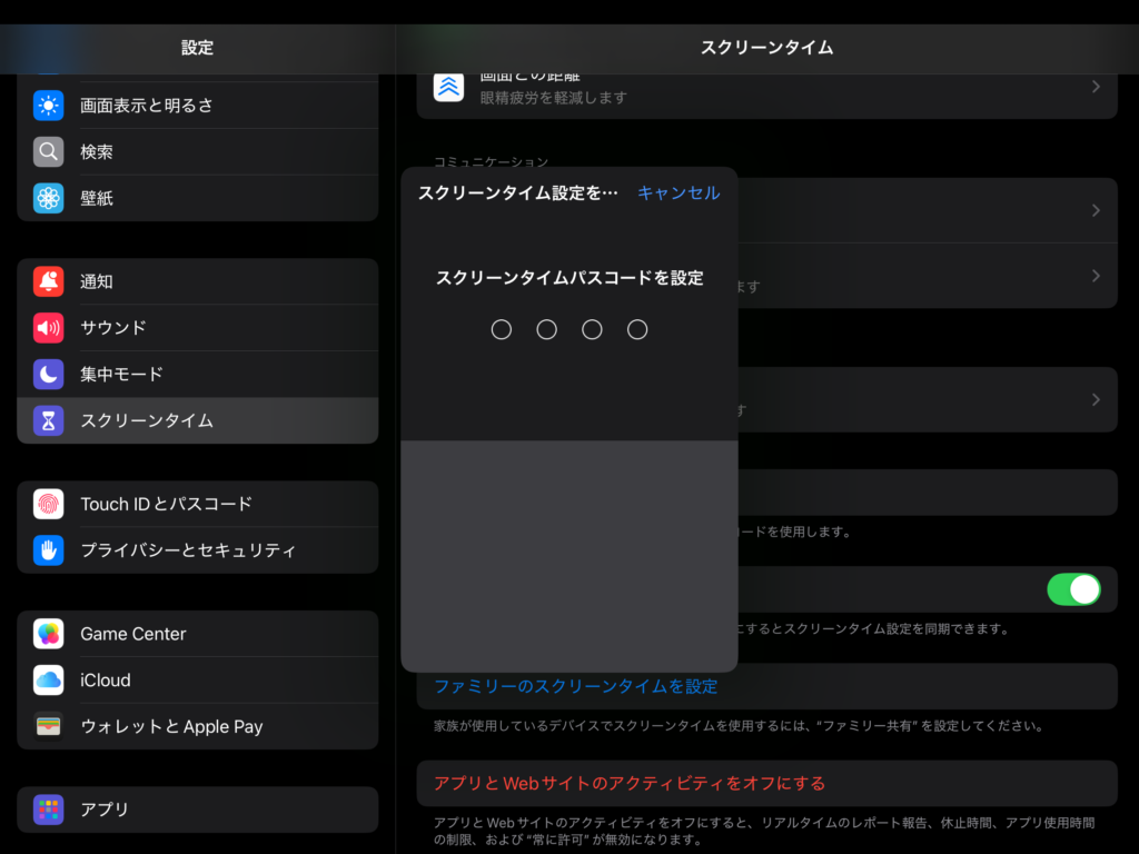 3.スクリーンタイム設定にパスコードロックをかける