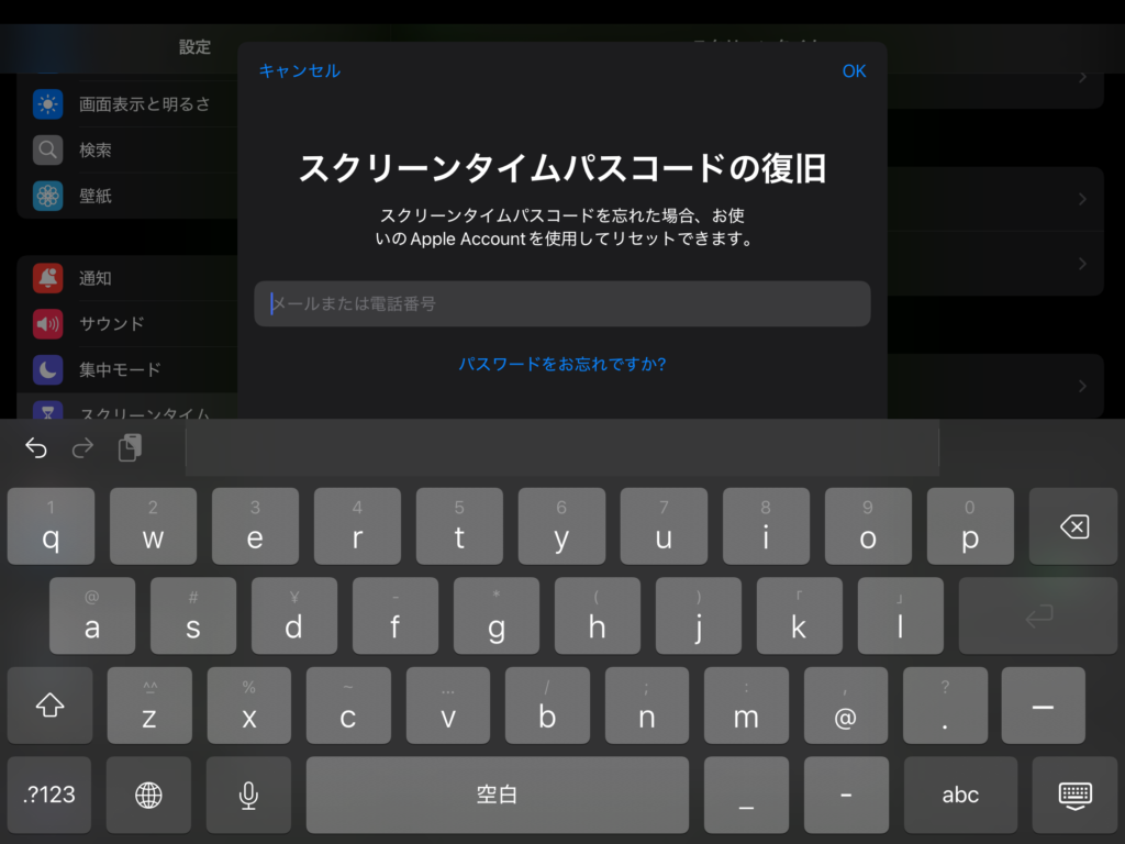 パスコード入力後にApple Accountを入力することで、パスコードを失念した場合でもリセットが可能です。