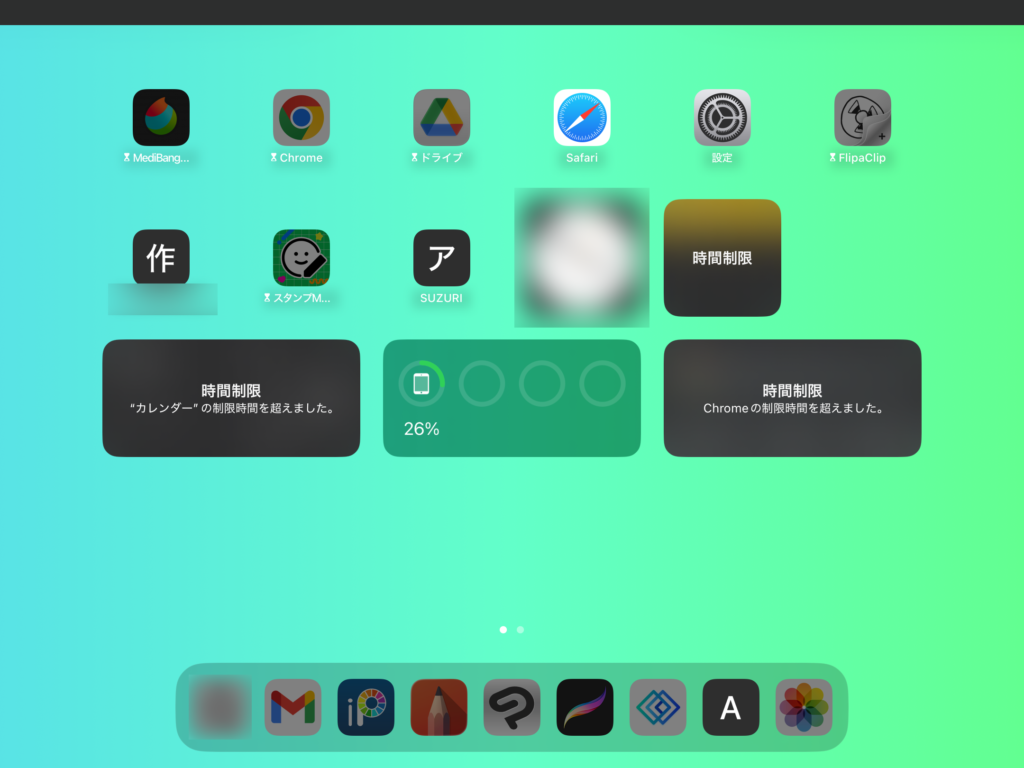 設定した時間になると、画像のようにアイコンは暗くなり、設定以外のアプリを使用することができなくなります。
