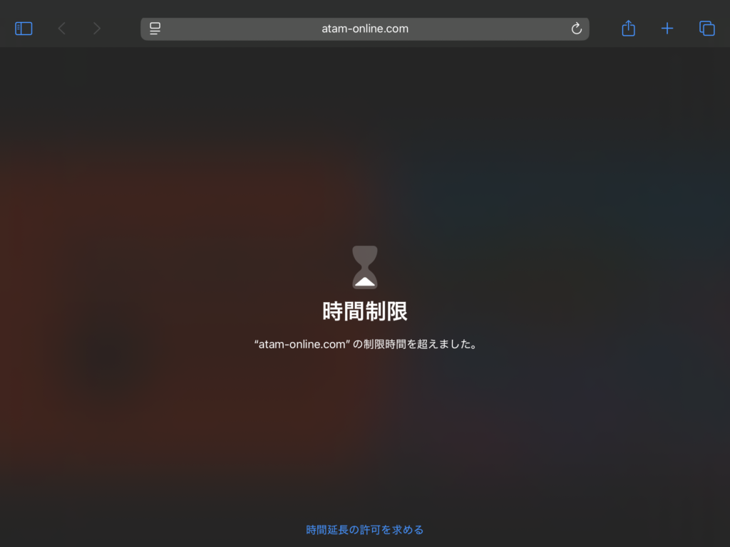 制限をかけたアプリの使用時間が超過すると、このようになります。