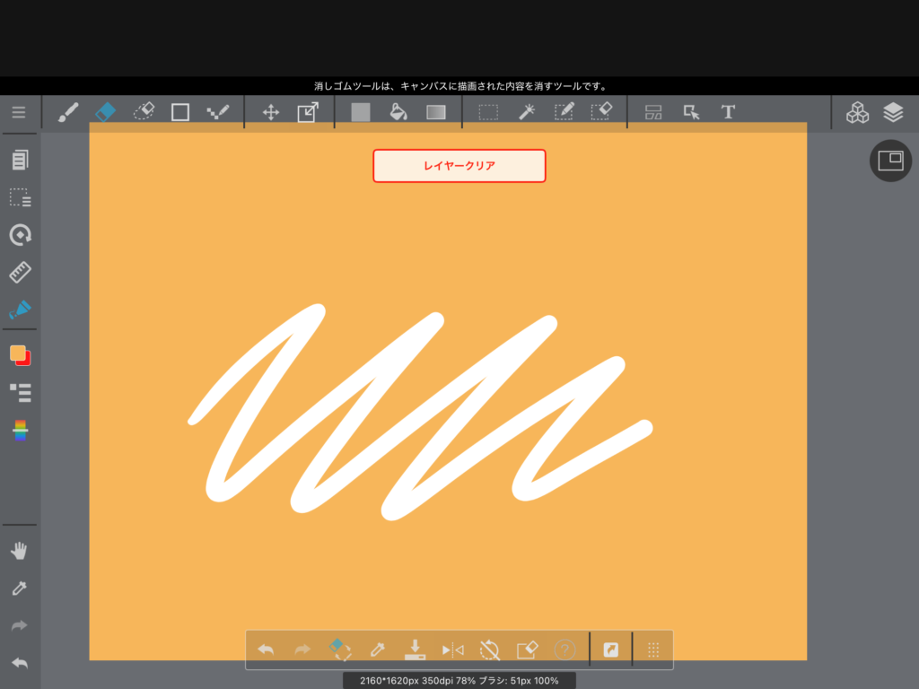太さと不透明度を設定して、イラストを消すことができます。