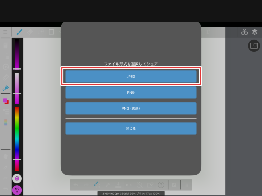 今回は「JPEG」を選んでみてください。