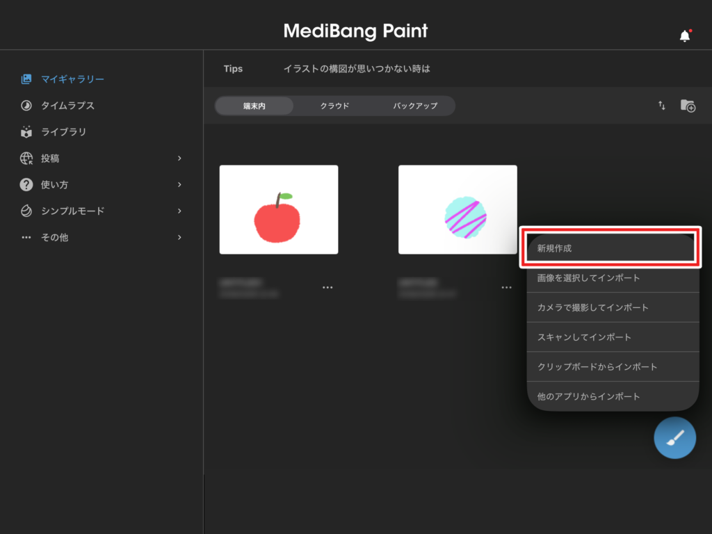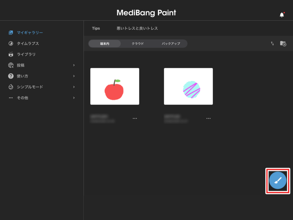 右下のブラシのマークから作品を作ることができます。