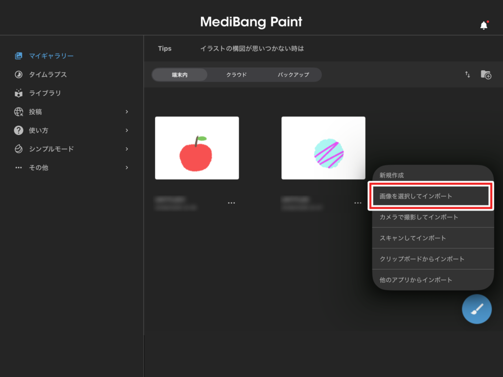 「画像を選択してインポート」をタップします。