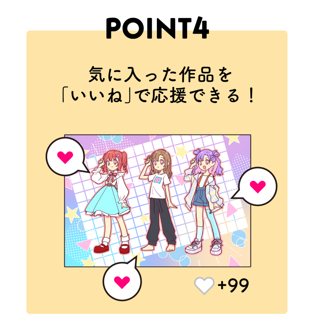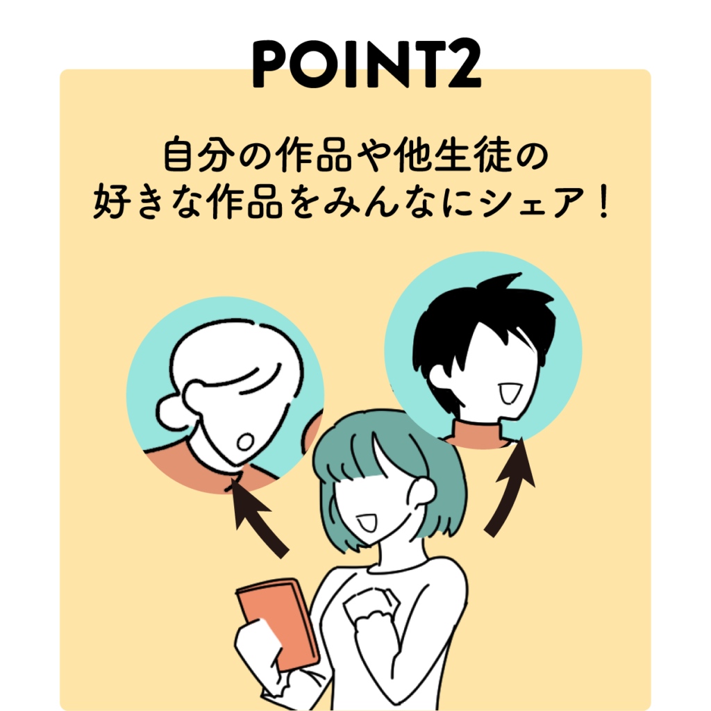 家族や友人に自分の作品を共有できる機能や「いいね」を押せる機能など、コミュニケーションツールとしても活用できる仕様になっています。